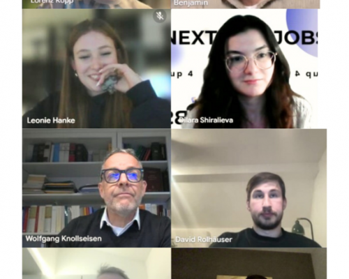 Der Höhepunkt unserer Challenge war der Online-Pitch der Teilnehmer*innen vor unserem Verwaltungsrat. Die ausgewählten vier Top-Teams haben ihre Visionen präsentiert – mit spannenden Ideen, innovativen Ansätzen und frischen Perspektiven. Die Ergebnisse zeigen uns, wie wichtig es ist, frühzeitig bedarfsgerechte und zukunftsorientierte Job- und Kompetenzprofile zu entwickeln, die den Anforderungen von morgen gerecht werden.